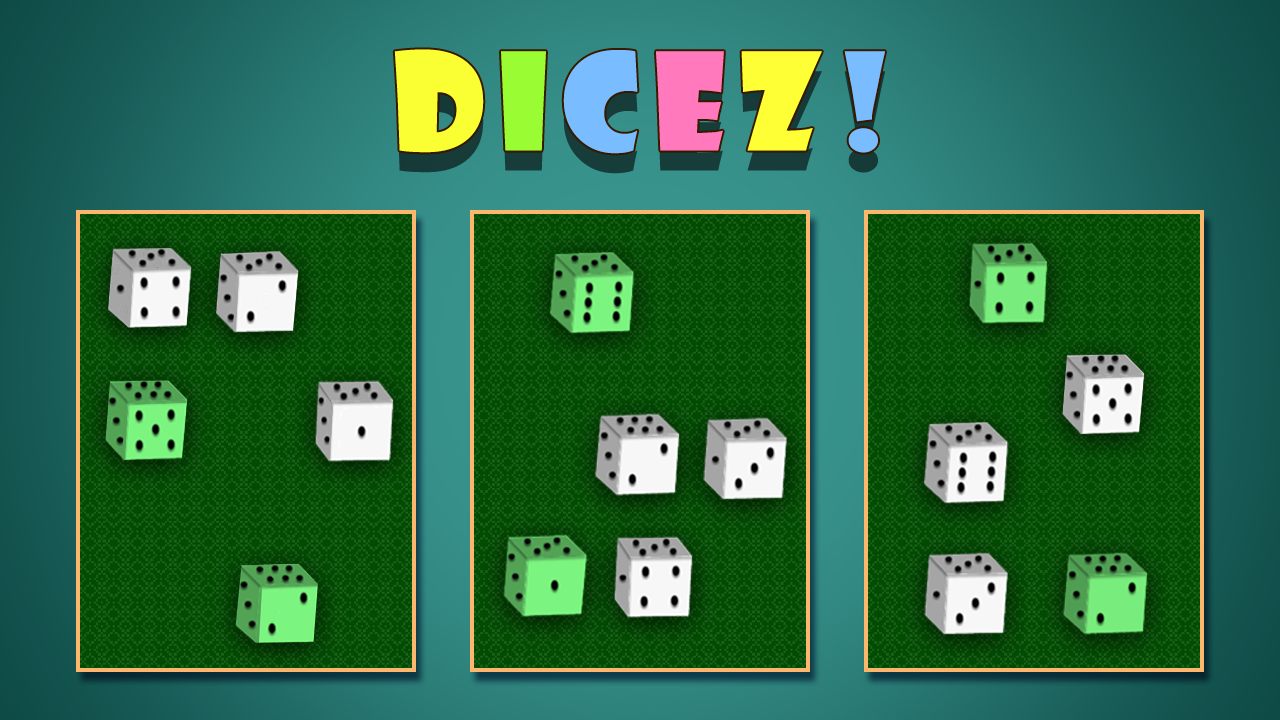Dicez! - Leden arkadni zabava skupaj nasprotnikom skupaj iskan inteligenco, pri tem športu bi radi metali kocke in izbirali položaje, da bi zbrali športne nasprotovanje in premagali nasprotnika. Izbrali boste kocko, ki bo konjugiran. izkusila naslednjo količino, in metali druge. Ta zabava veja čist počitku in fascinantnemu igranju družabnih zaslon iger.